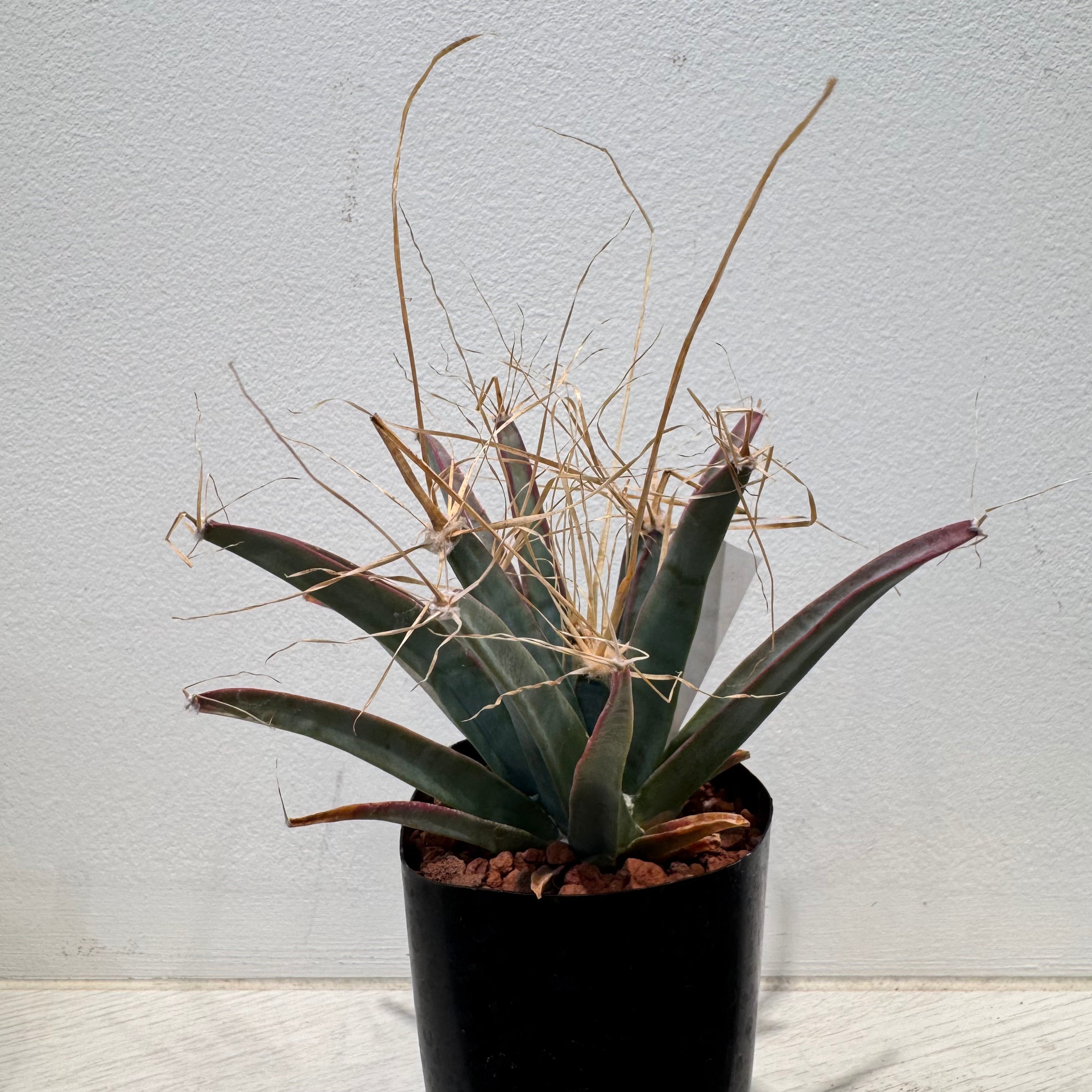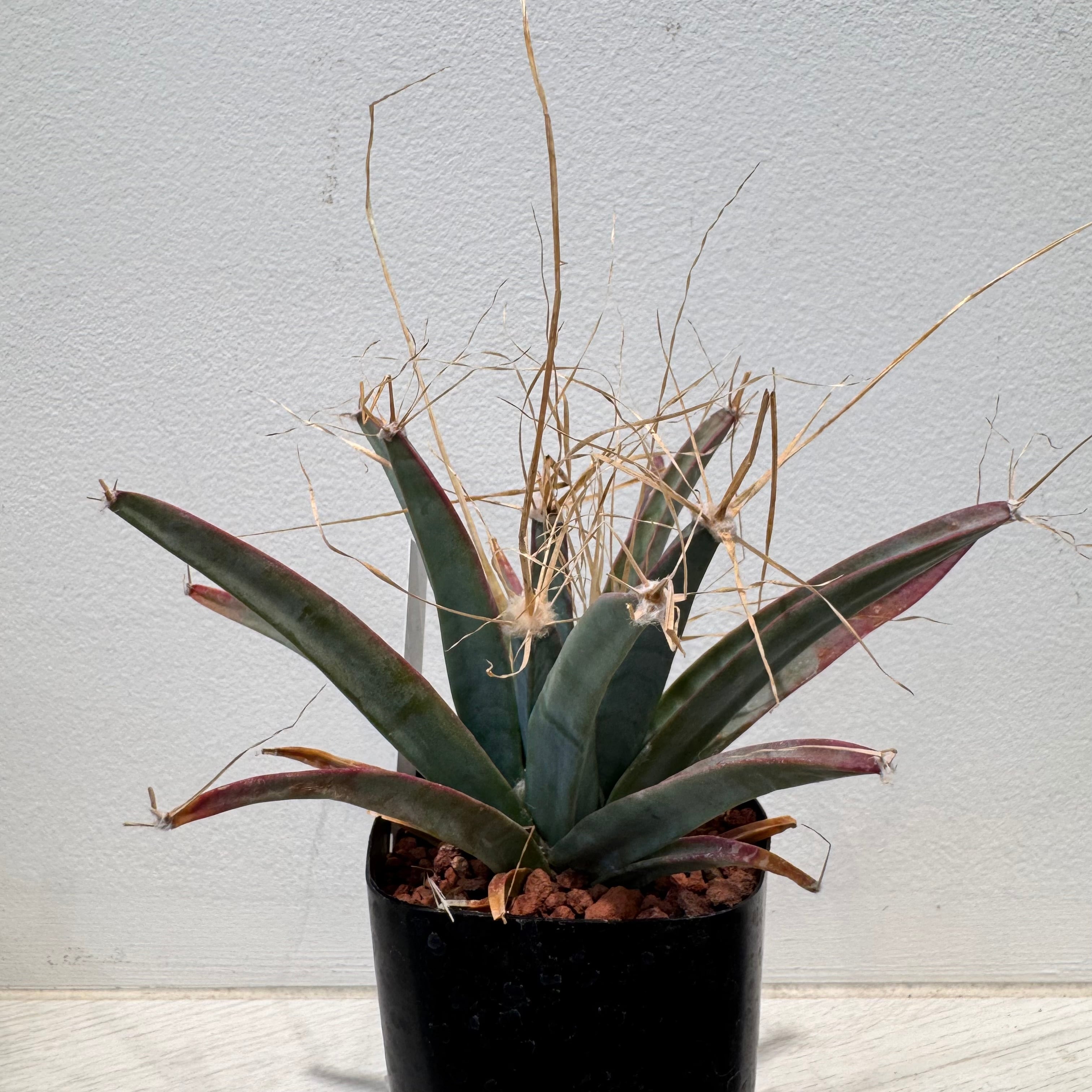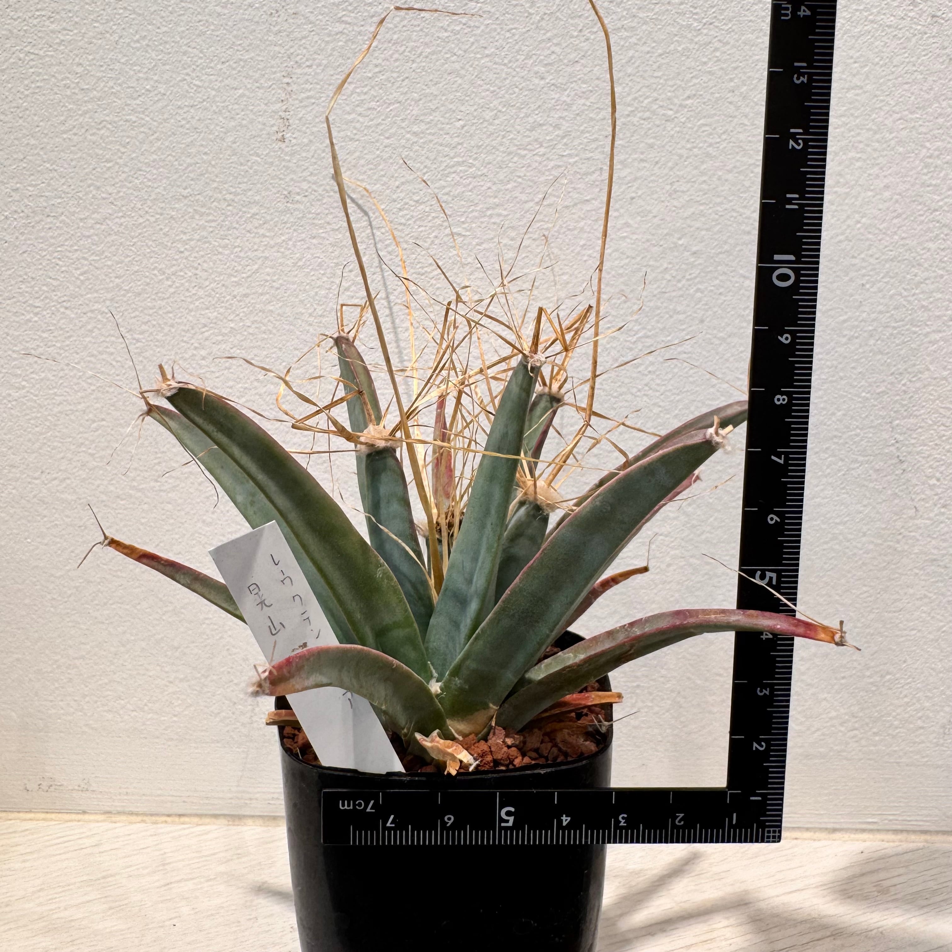 丸くなく、尖った見た目でユッカやアガベのようにも見える一見、サボテンには見えない種類のサボテンですが、れっきとしたサボテンの一種です。棘座から複数の長い短いトゲを出し、花火のように見えます。