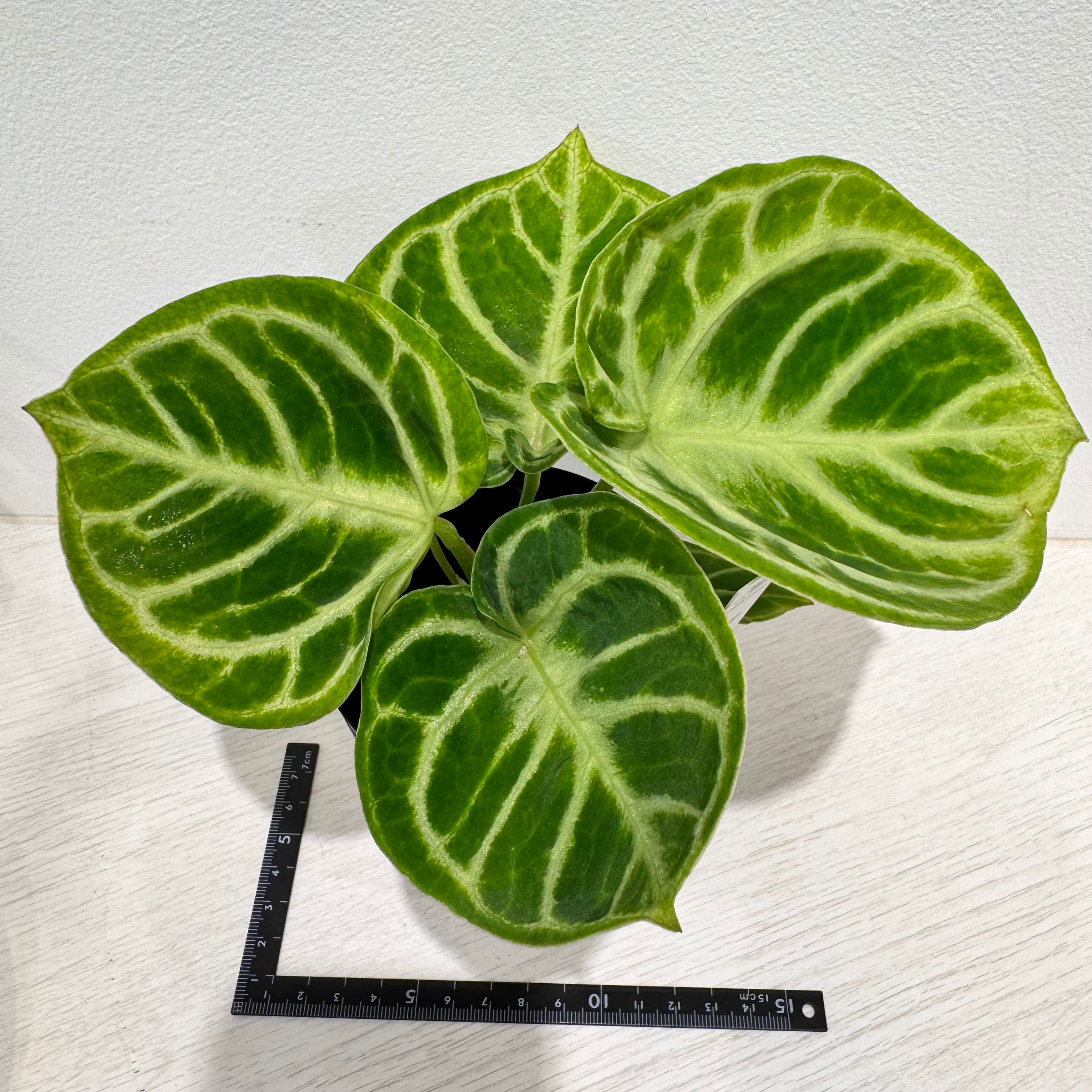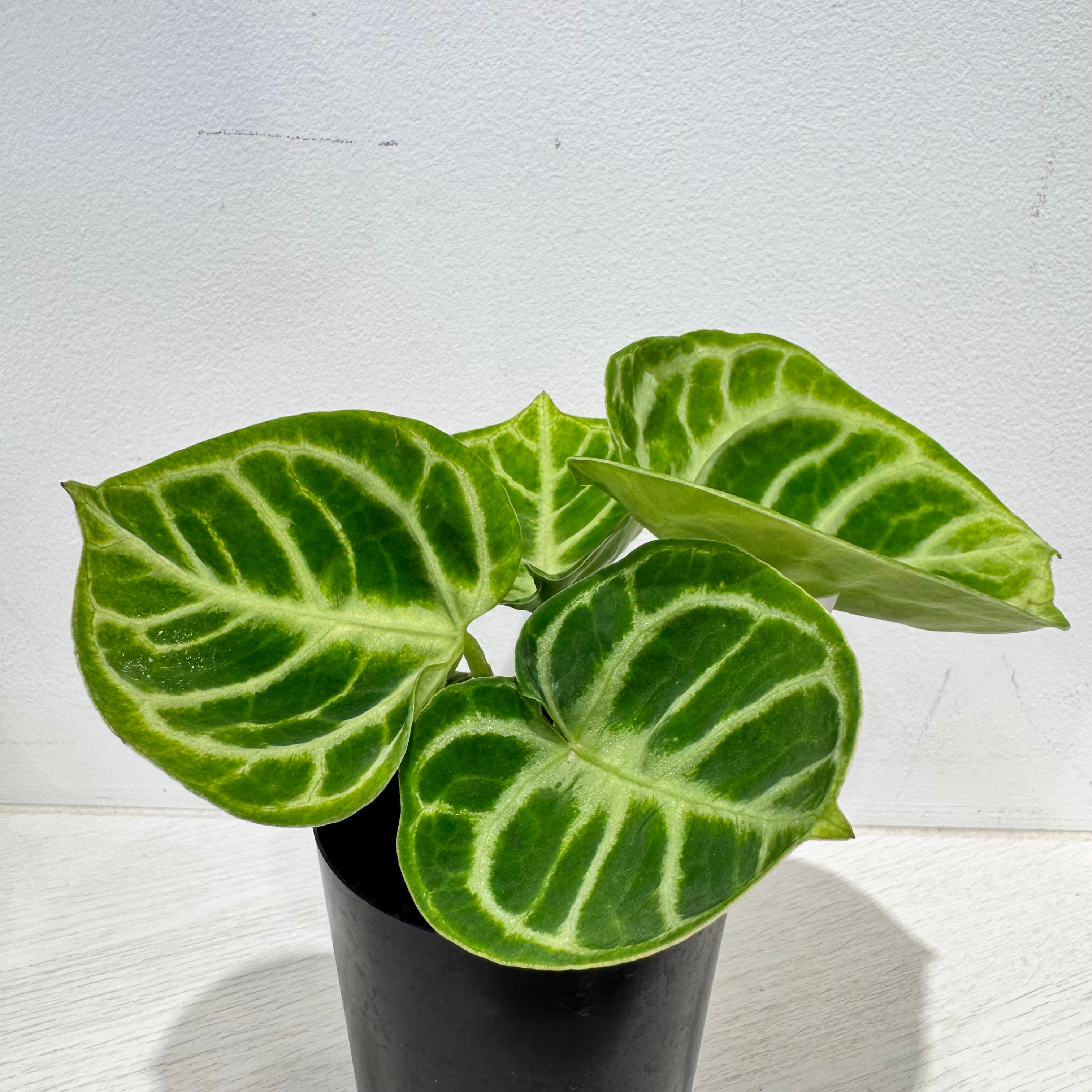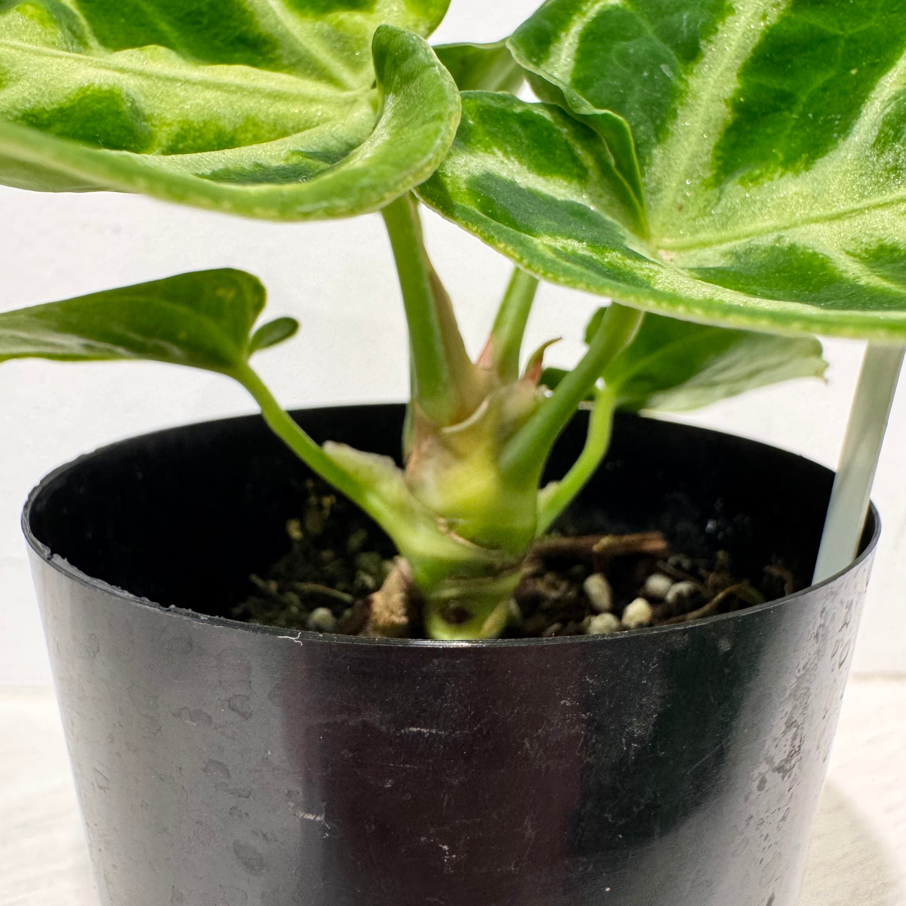 アンスリウムの中では、葉が大きいですが、中〜小型の種類になり、子株をふいたりもします。