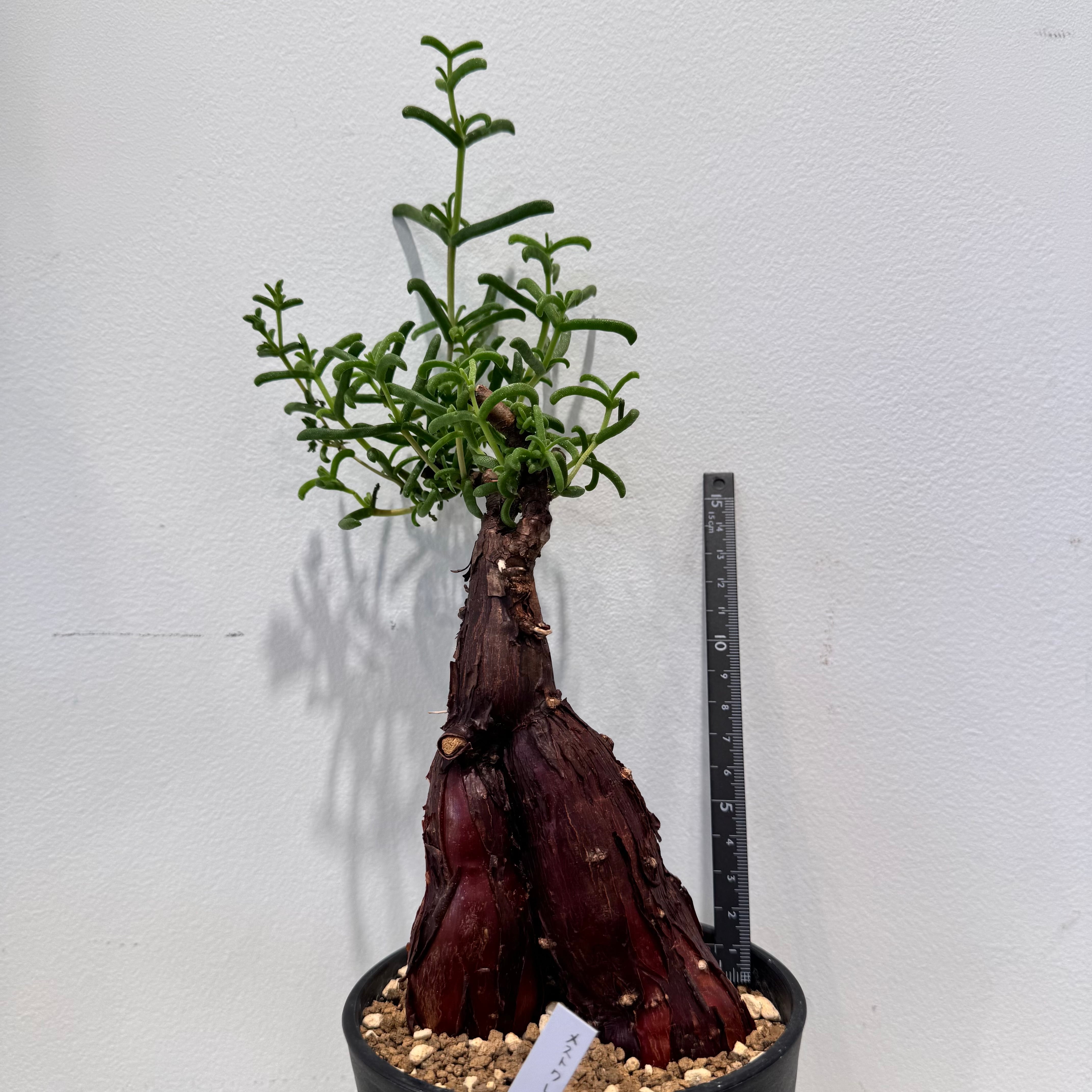 ハマミズナ科の塊根型メセンになり塊根部から、葉、茎を展開して成長し、塊根部が大きく成長していきます。