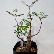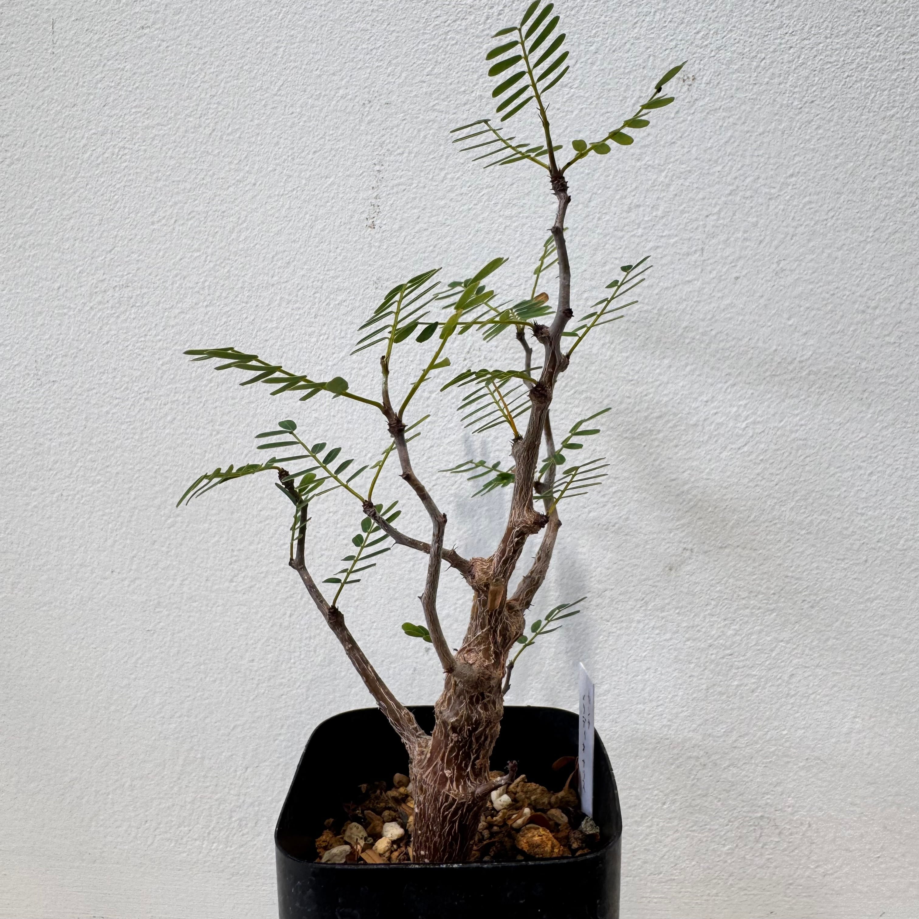 マメ科の塊根植物で、複数の細長い丸葉が付き、夜は葉が閉じるなど、見た目も盆栽のような雰囲気で人気が高い植物です。総合的にバランスが良い個体です。