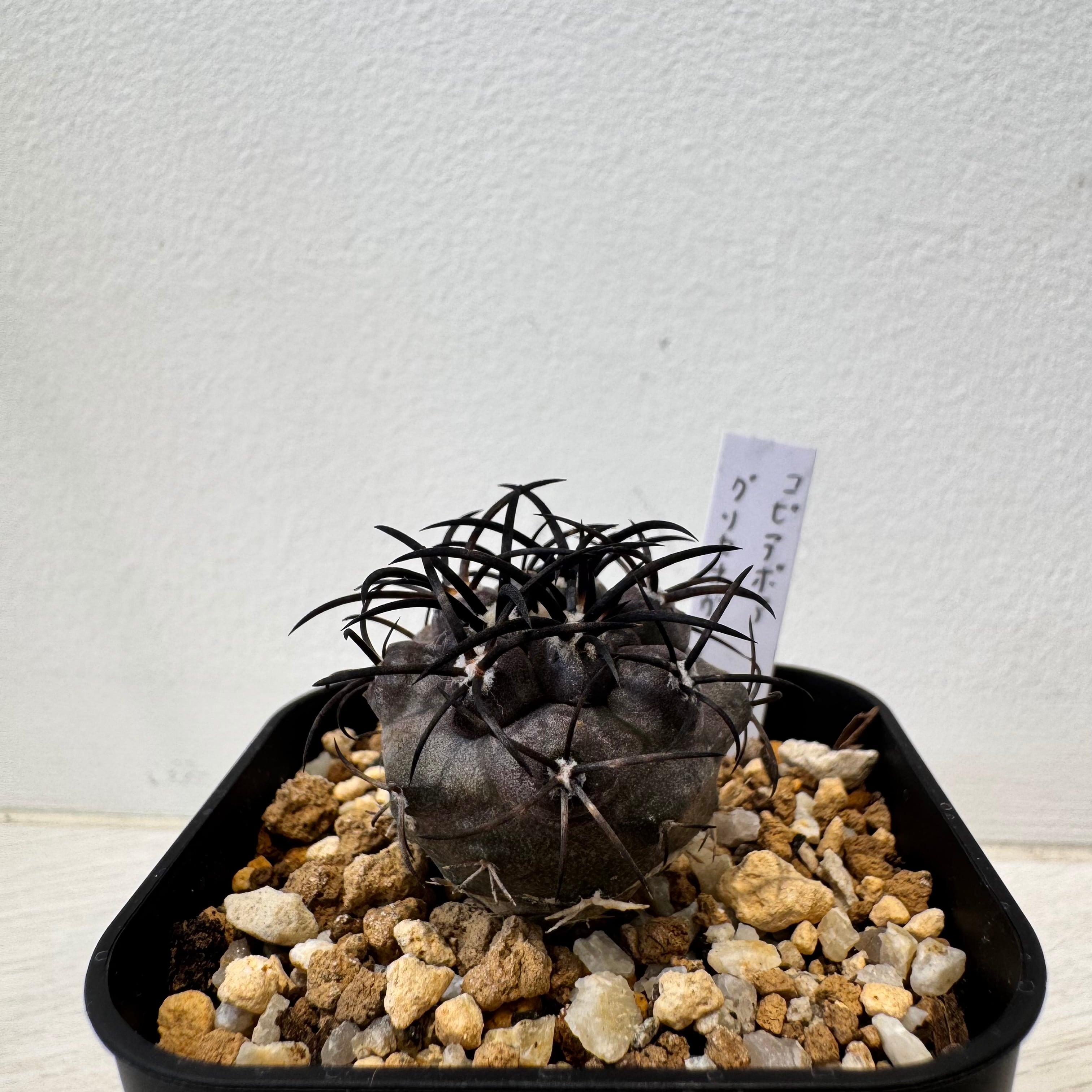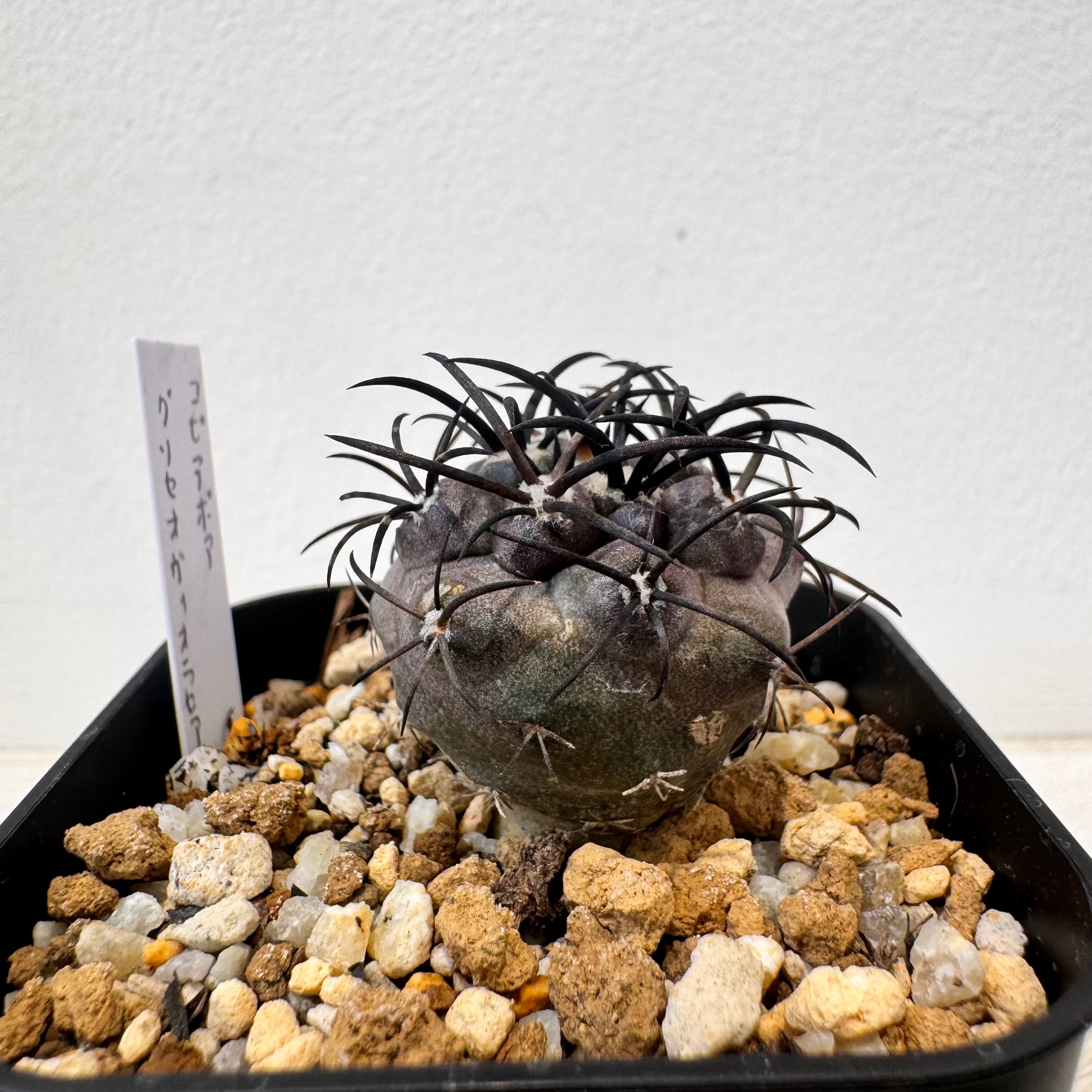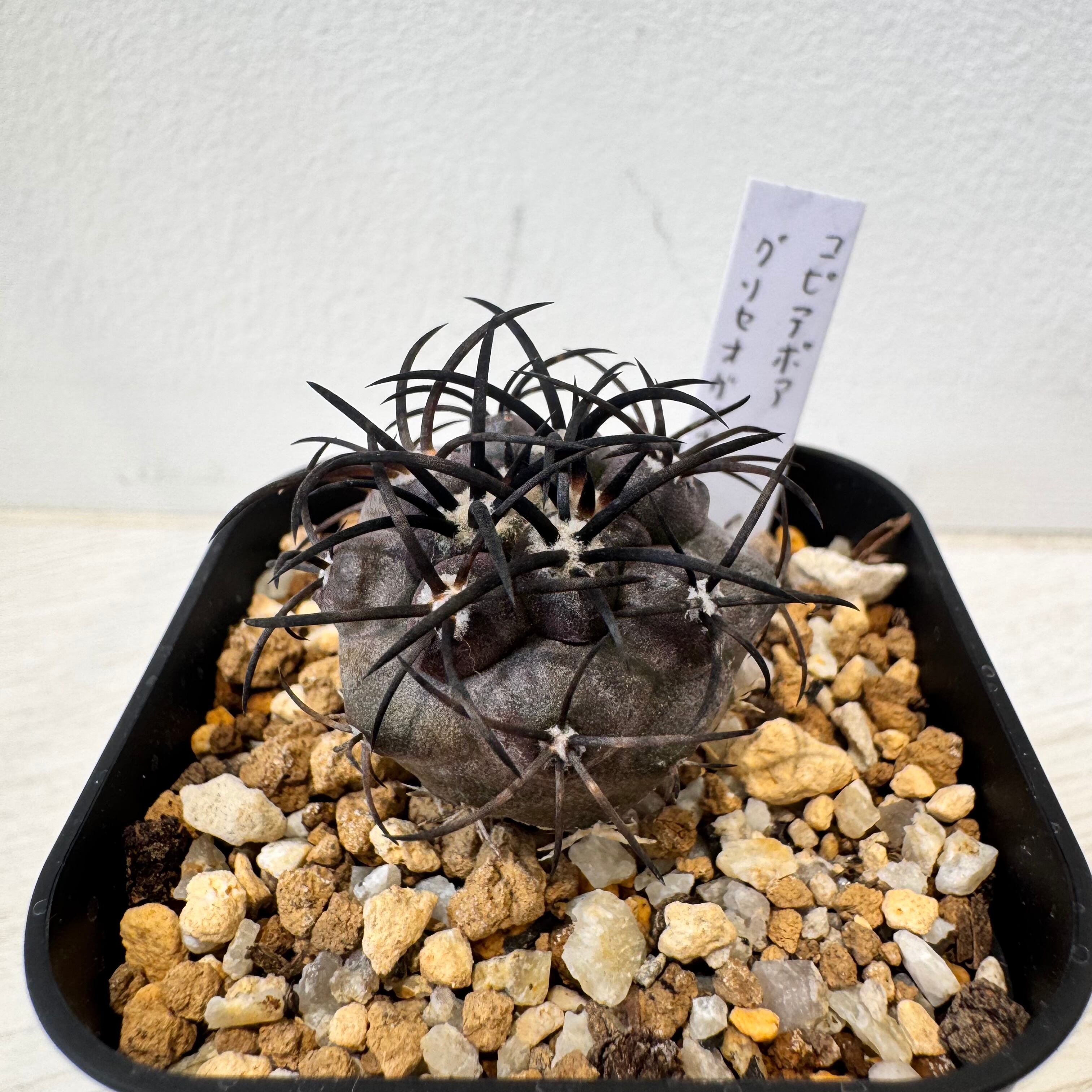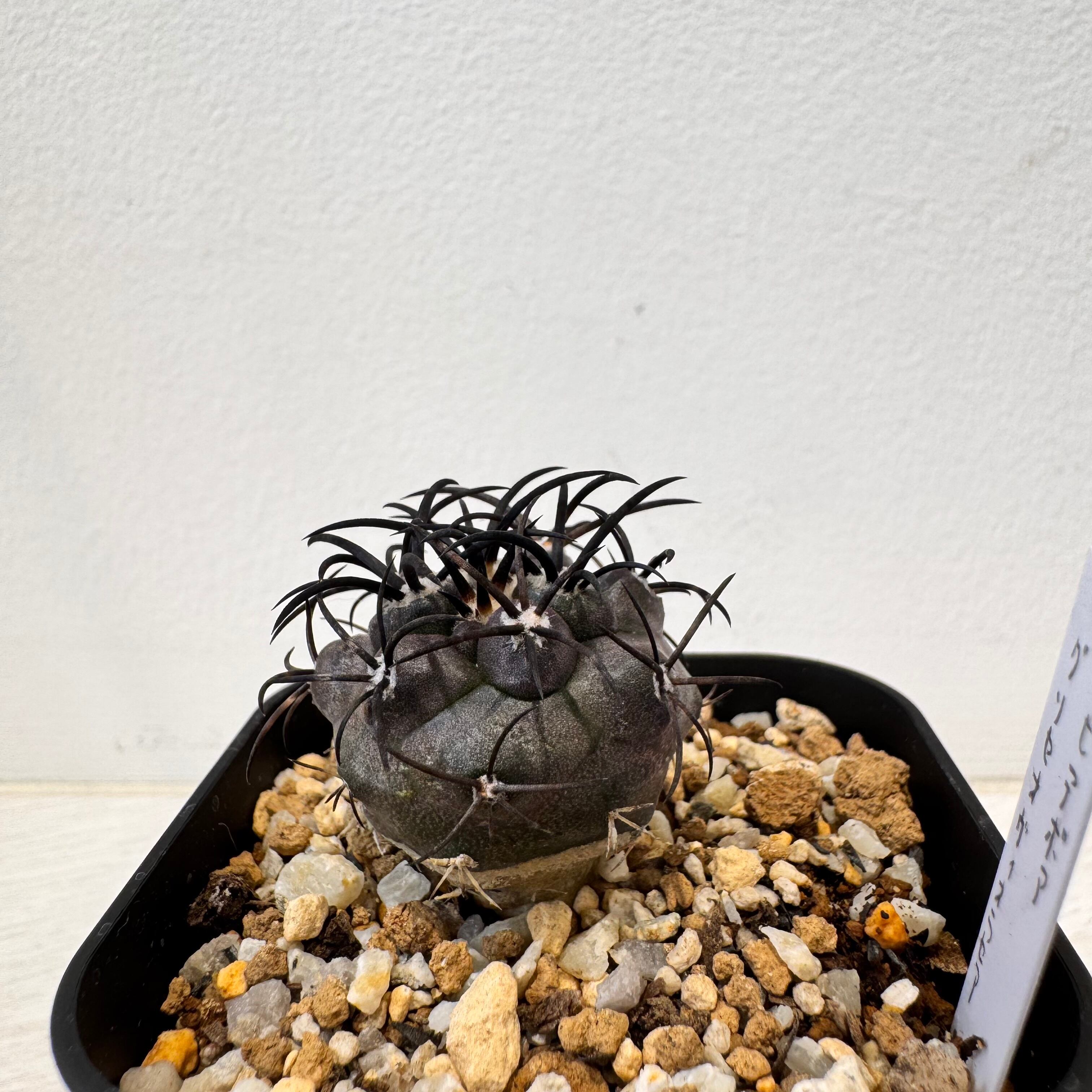 本体に巻き付くような黒いトゲと、肌色も黒いので、カッコいいサボテンの一種です。成長は遅く、咲くのもある程度年数が経ってからになるので、希少なサボテンの1つです。